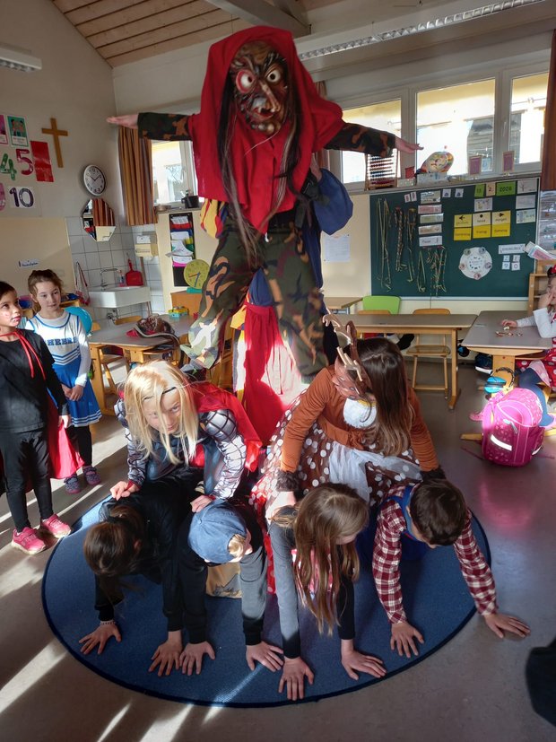 Am rußigen Freitag bekamen wir in der Pause Besuch von den Gluathexa Illerwinkel. Diese feierten mit uns im Pausenhof und in der Aula eine tolle Faschingsparty mit Polonaise und Pyramiden bauen und standen im Anschluss den einzelnen Klassen für Fragen und Erklärungen zum Brauchtum bereitwillig zur Verfügung. Wir hatten viel Spaß miteinander und bedanken uns recht herzlich für die gelungene Überraschung. Hexagluat-hailos guat!