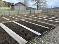 Das Freilichtmuseum Illerbeuren stellt uns zum Ackern den Bauerngarten Engenberg zur Verfügung. Dort haben wir ein wunderschönes Gelände mit über 50 Quadratmetern, einen Geräteschuppen und einen Wassertank.